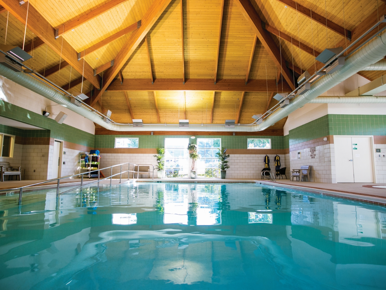 Well-Spring residents can enjoy a heated indoor pool featuring areas for lap-swimming, water aerobics and relaxation – in a beautiful facility right inside your neighborhood! Aquatic therapy, water walking and water aerobic classes always prove popular and are excellent workouts for seniors without stressing joints. Or start your day simply swimming laps. Our aquatic center also features spacious dressing rooms, making it easy and convenient to make the pool a part of your daily routine.
