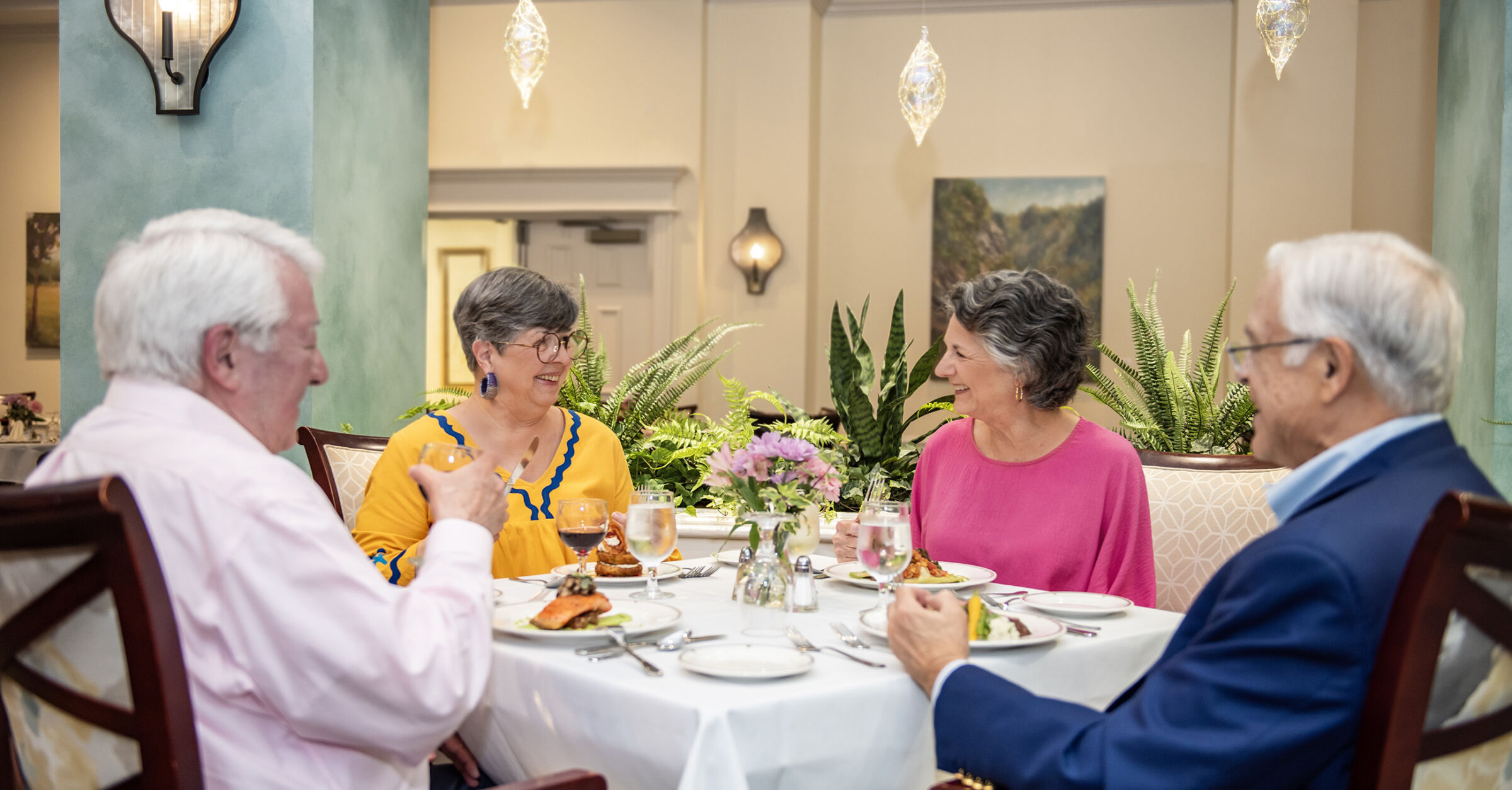That is not an overstatement. Asked over and over again about our dining, our residents say – it’s outstanding. Whatever your tastes, we offer it. From an elegant dining experience to casual pick-up service, you can always have a delicious, enjoyable meal.